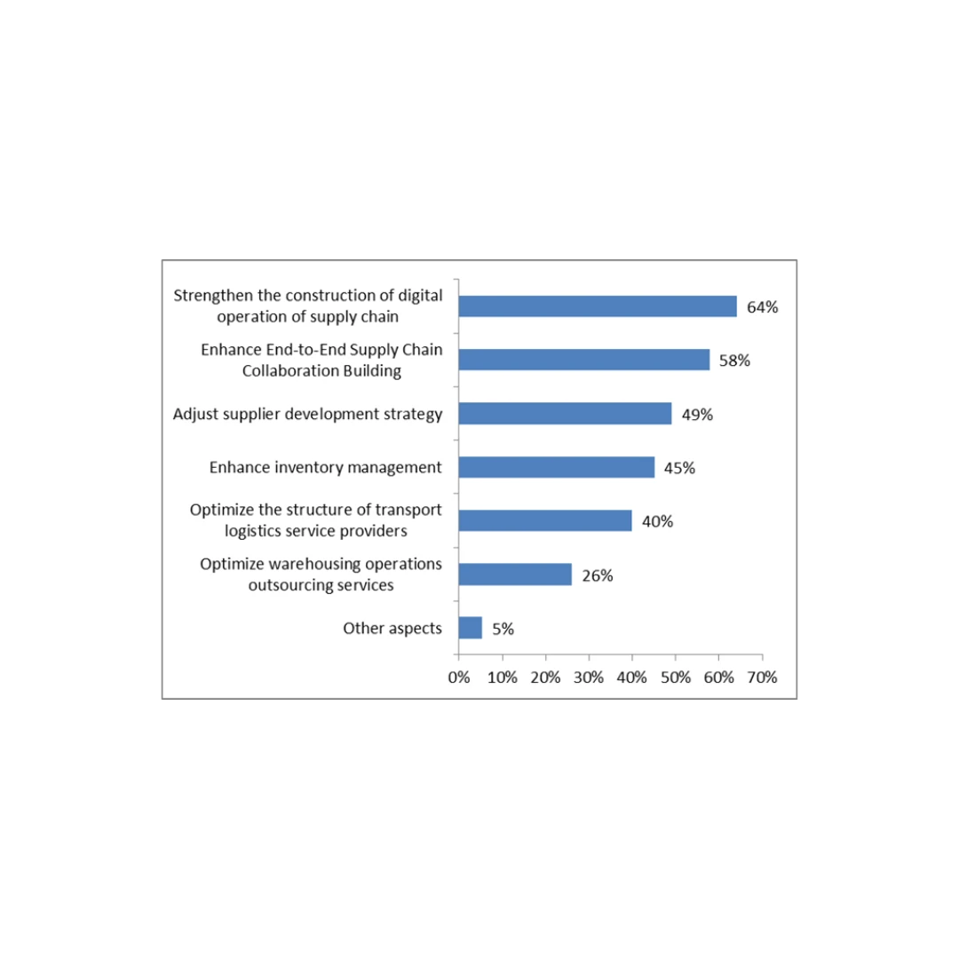 Particularly the developments to enhance the visibility across the whole upstream and downstream supply chain and strengthening the collaboration among all value chain partners is a key priority as Figure A shows. “Building robust end-to-end supply chains is a multidimensional task. It encompasses data driven control towers to monitor shipments, orders and inventory data so that you can pro-actively intervene across the ecosystem. But also moving towards dual sourcing for components, while assuring quality and delivery certainty, are key. As more than 90% of the companies want to reduce their supply chain risks, there is a huge task in front of us to incorporate the required resilience in today and tomorrow’s supply chains” according to Patrick Haex.