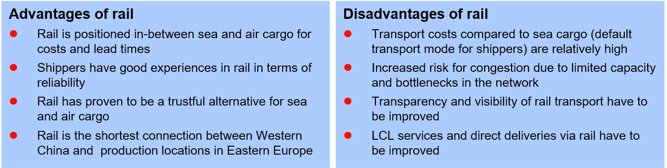 + Rail is the shortest connection between western China and production locations in Eastern Europe.