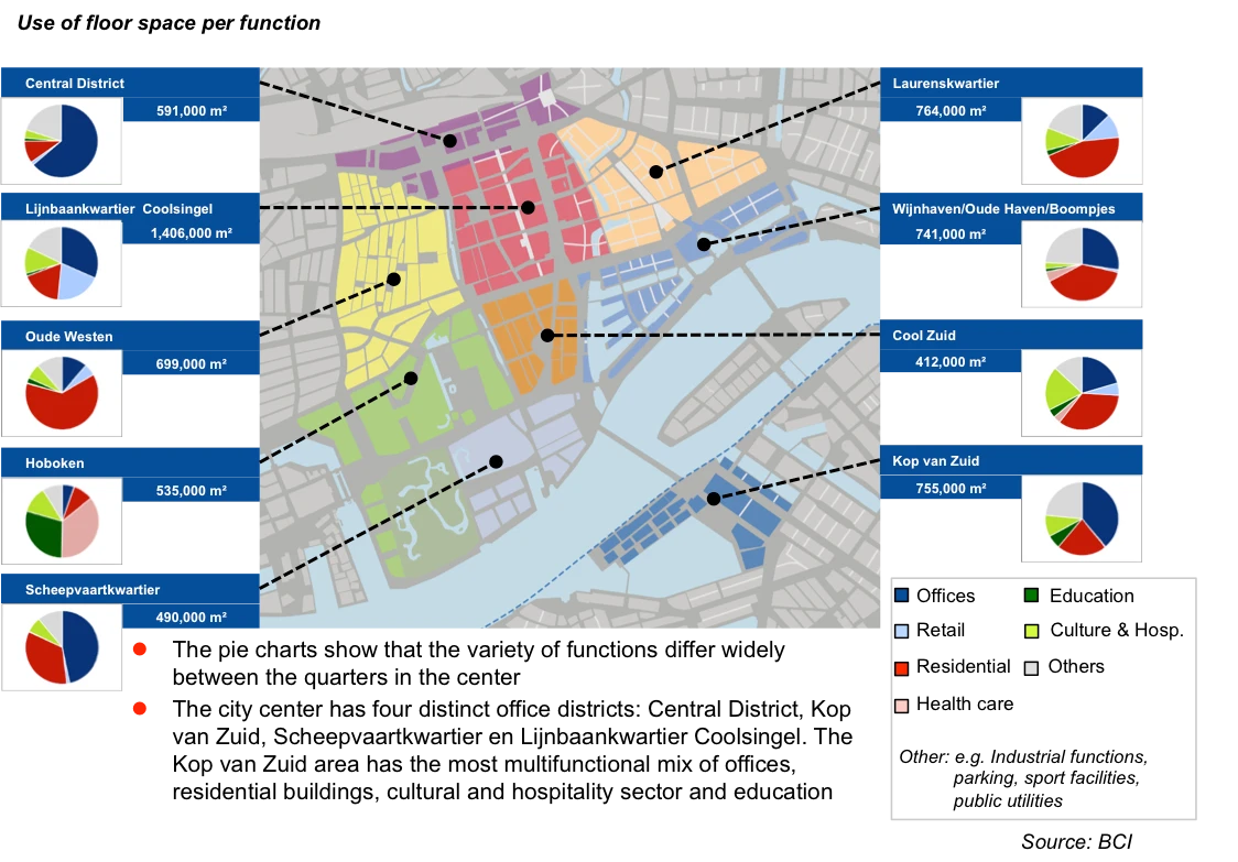 The municipality of Rotterdam sees the city center as the cornerstone for economic development of the city. Therefore, the economy is the prime driver for the integrated spatial-economic plan for the city center. The main building blocks for the strategy for economic development of the city center of Rotterdam are: